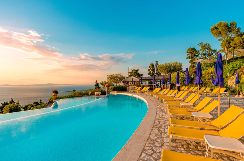 The Caesar Augustus hotel enjoys a privileged location overlooking Vesuvius and the Bay of Naples. It has free parking, a panoramic pool and an excellent restaurant. In addition, its rooms are elegant and bright.